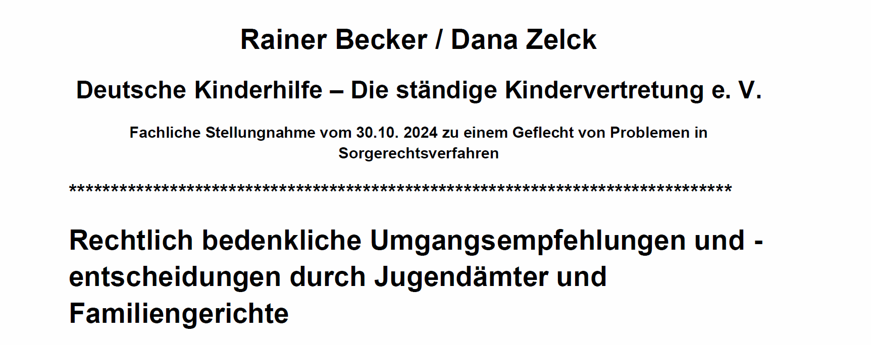Fachliche Stellungnahme vom 30.10. 2024 zu einem Geflecht von Problemen in Sorgerechtsverfahren